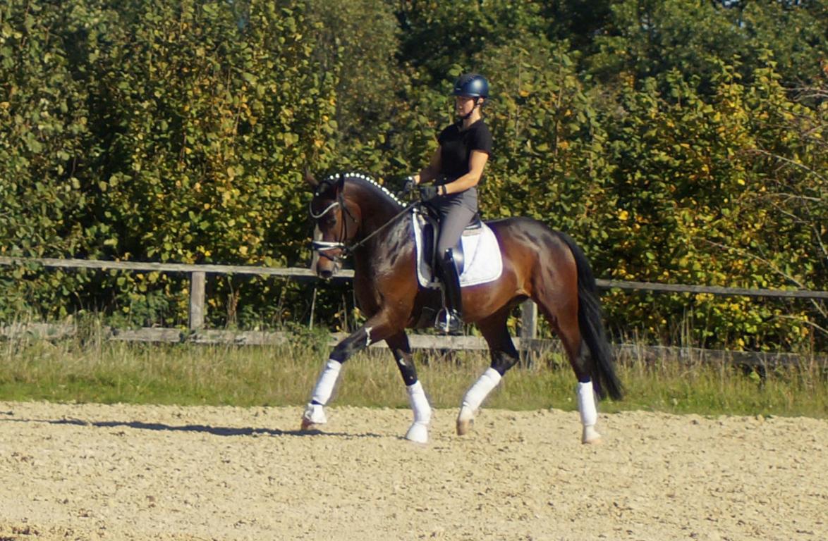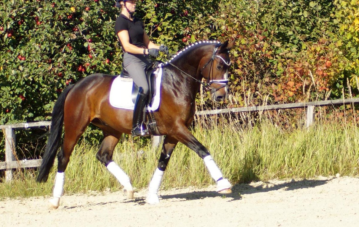 Insgesamt ist er das vollkommene Dressurpferd, welches komplett ohne künstliche Spannung mit Leichtigkeit ins Federn kommt.
